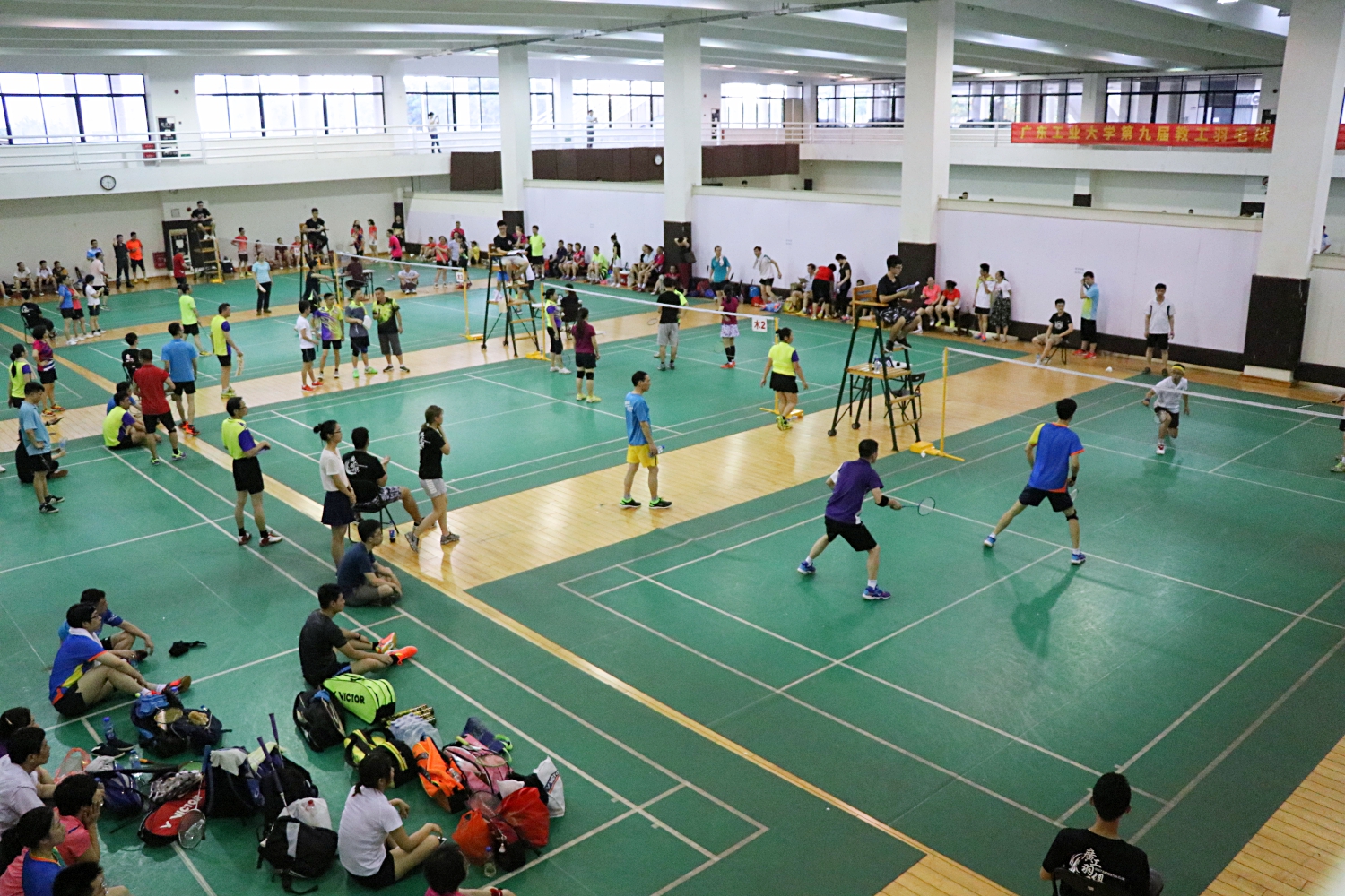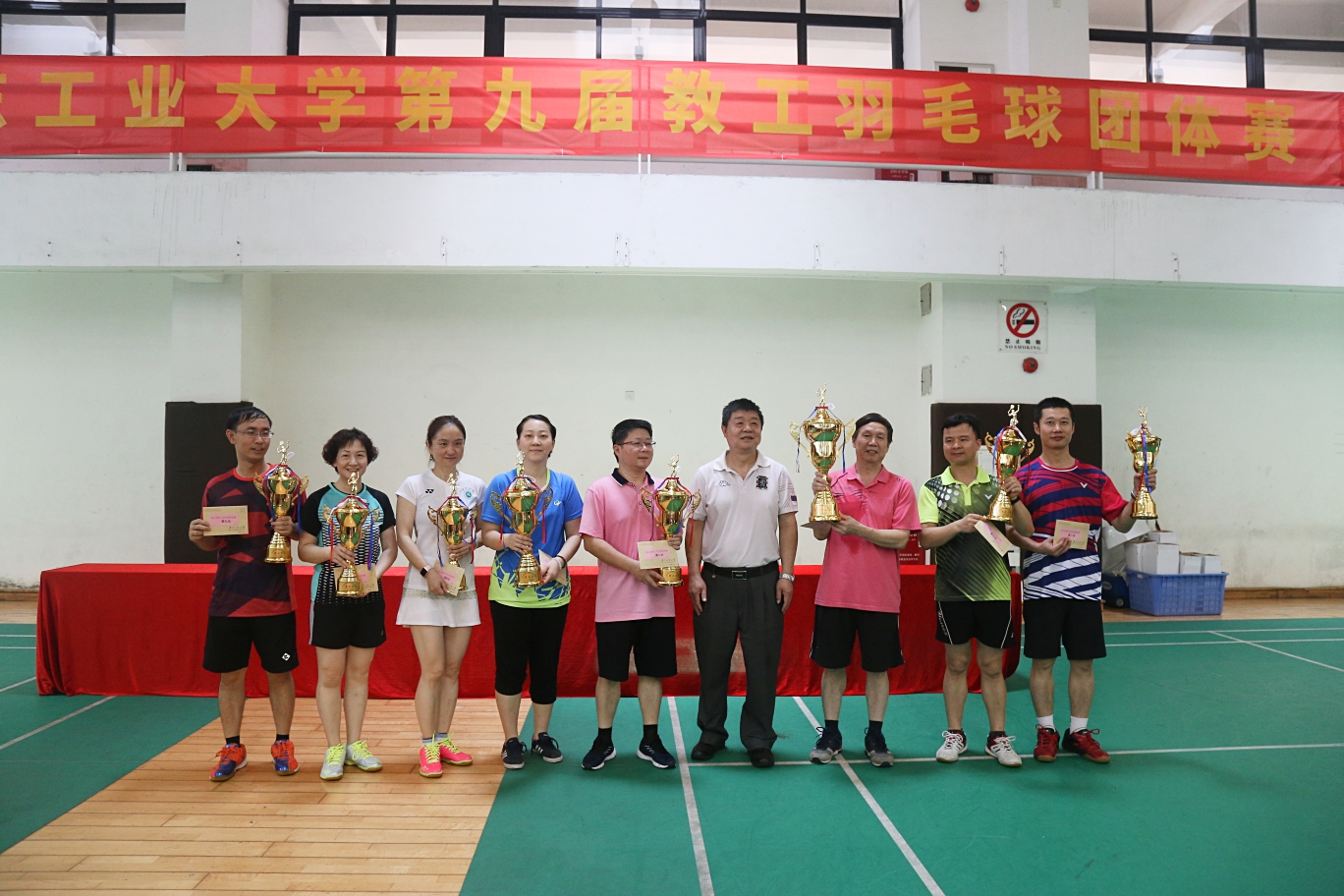 5月26、27日,顶着炎炎夏日,第九届教工羽毛球团体赛在大学城校园综合训练馆如火如荼地举行。副校级干部张学理到场观战助威,bevictor伟德官网常务副主席翁专为获奖队伍颁奖。 羽毛球赛一如既往广受欢迎,可谓群“雄”毕至,少长咸集,共有31支队伍、500多名教职工参赛,各部门(单位)党政领导、各部门工会主席到场加油鼓劲。伴随着一次次精彩的扣杀、劈杀、巧妙的高远球、吊球,场上比赛队员奋勇拼搏,场下观战拉拉队鼓掌喝彩,裁判员兢兢业业,比赛气氛既热烈又融洽。 经过激烈的角逐,比赛结果终见分晓: 第一名:计算机学院部门工会; 第二名:后勤管理处部门工会; 第三名:体育部部门工会; 第四名:土木与交通工程学院部门工会; 第五名:信息工程学院部门工会; 第六名:管理学院部门工会; 第七名:校医院部门工会; 第八名:自动化学院部门工会。 祝贺所有获奖队伍,望各部门工会积极组织,促进羽毛球活动的常态化,进一步推动全民健身。